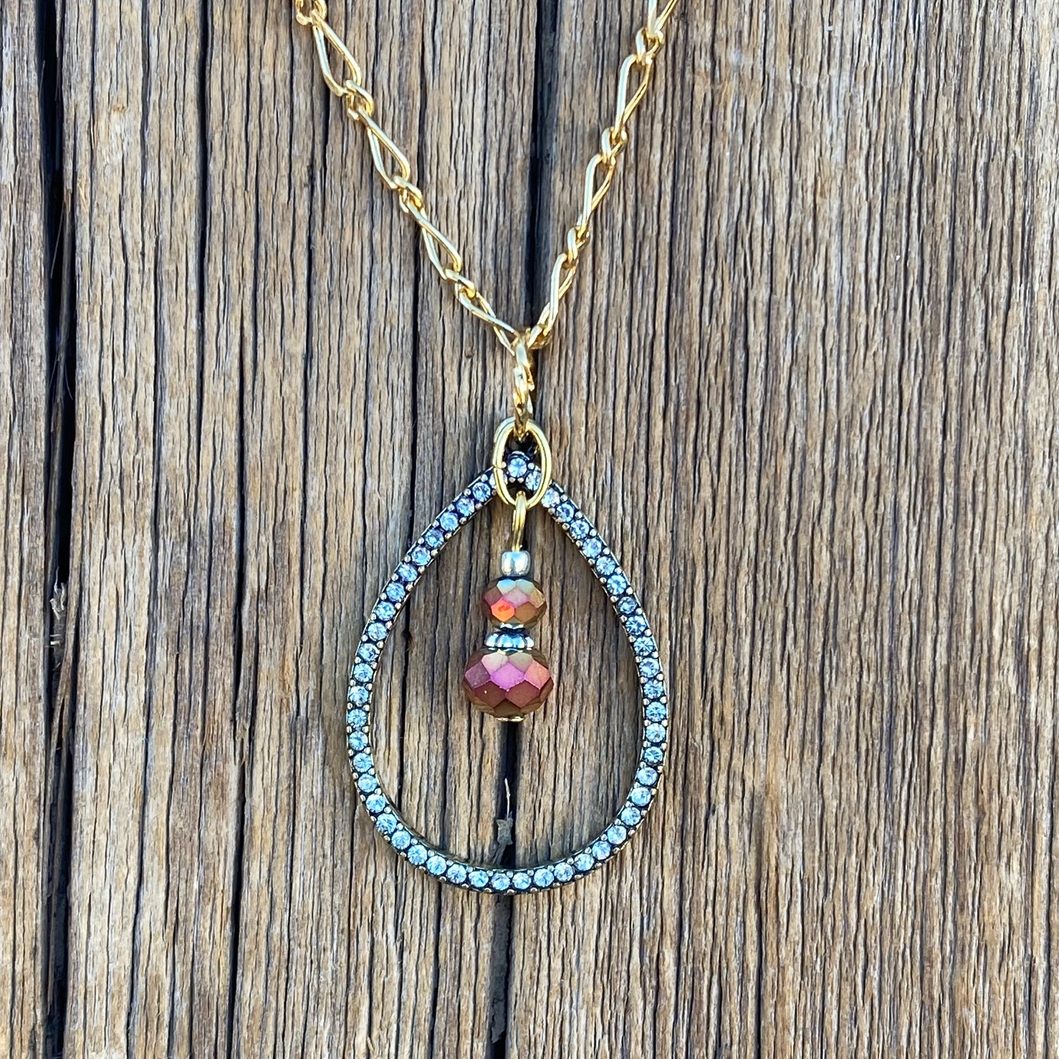 Champagne & Roses Rhinestone Teardrop Pendant #NC651-228