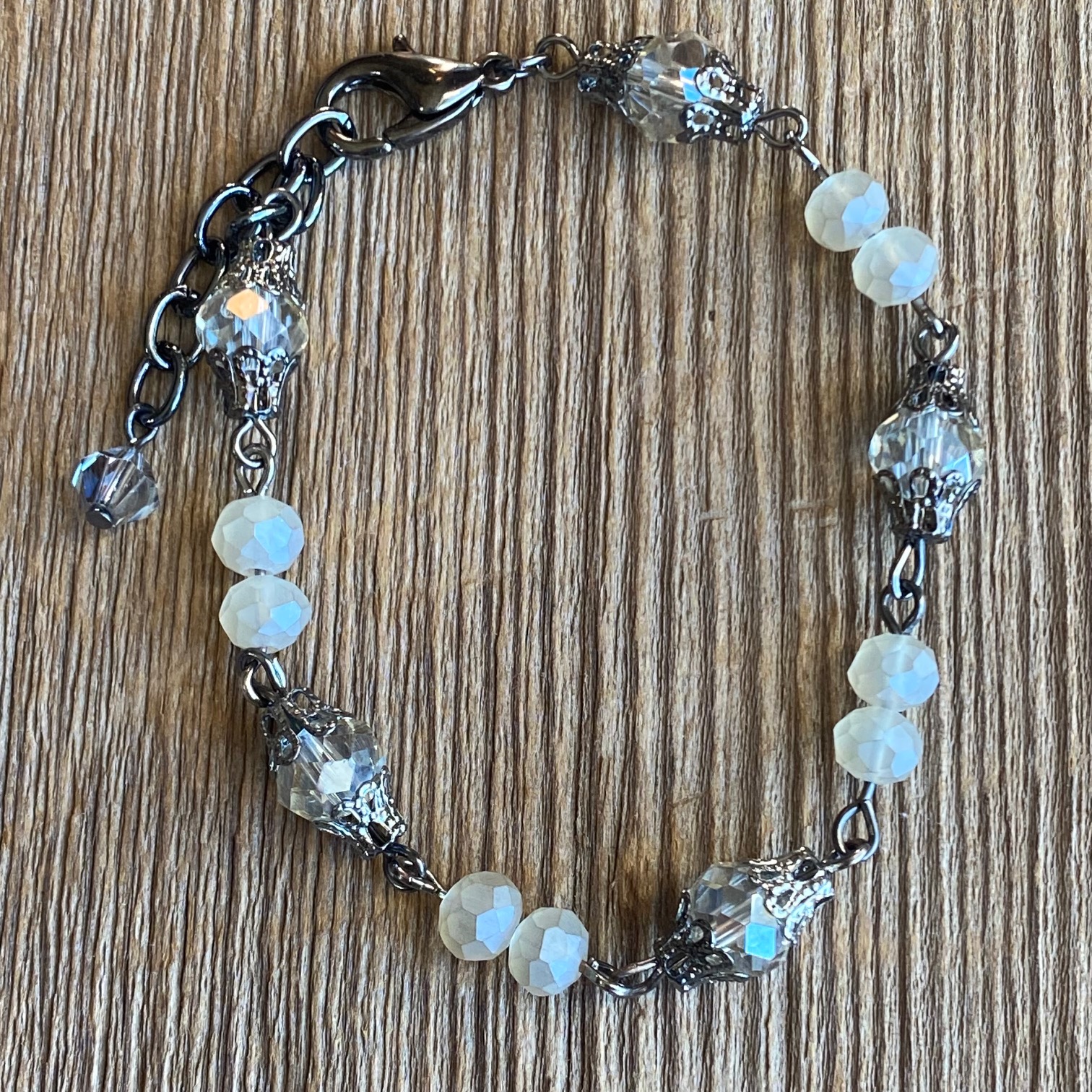 A filigreed gunmetal chain features faceted crystals in neutral tones. Lobster clasp. 7 inches long extending to 8 1/4 inches. Find companion pieces in our Legends Collection.