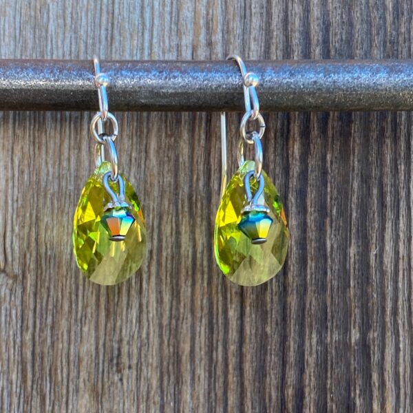 Silver nickel-free/lead-free French hooks feature lime-green Czech teardrops embellished with sparkling Bohemian crystals. 1 1/4 inches total length. Find companion pieces in our Margaritaville Collection.